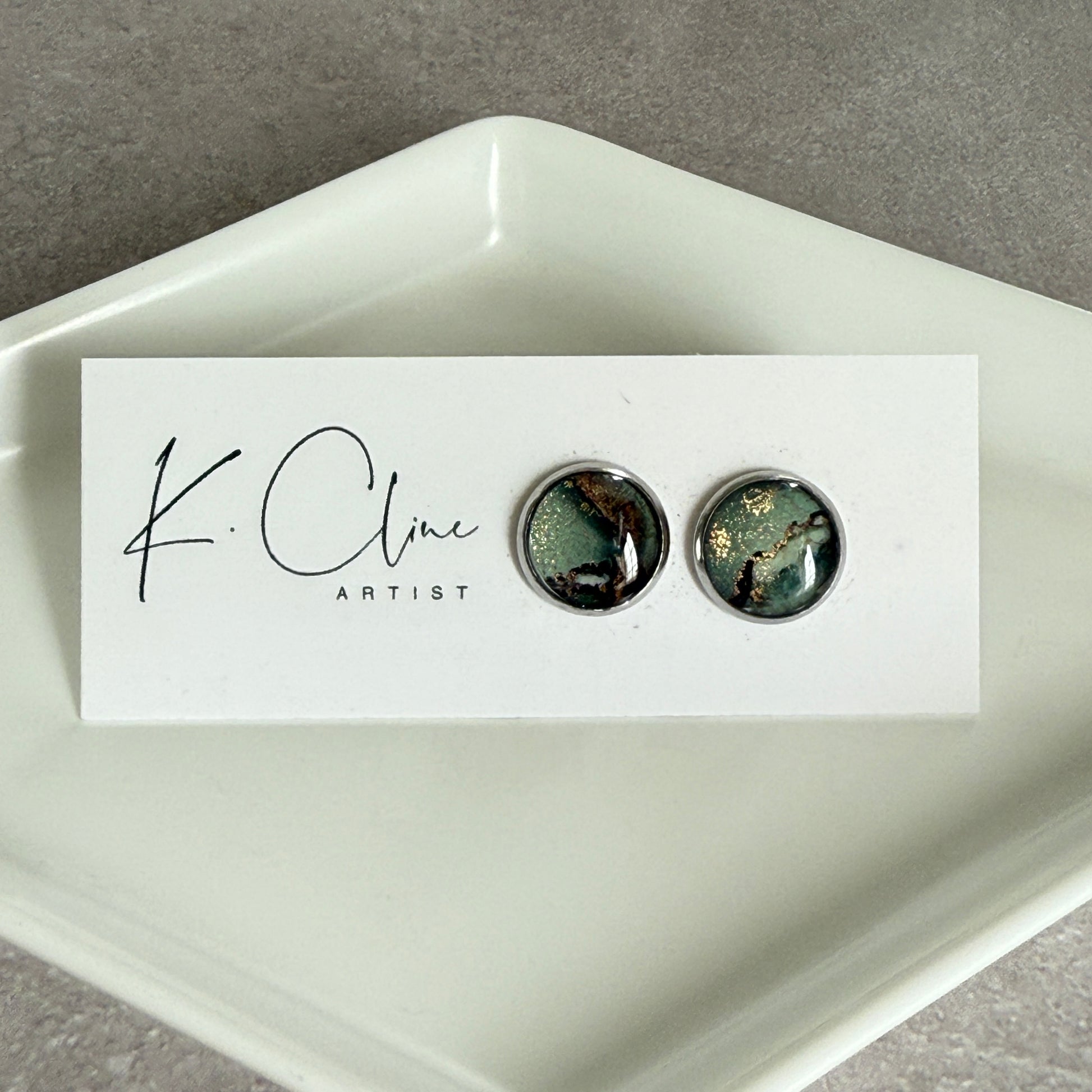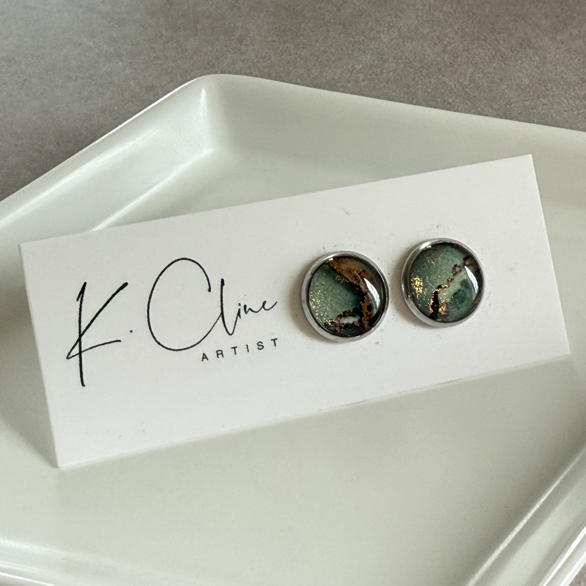 10mm stainless steel stud earrings set with clippings of my artworks and resin. It's a little piece of wearable art. :)