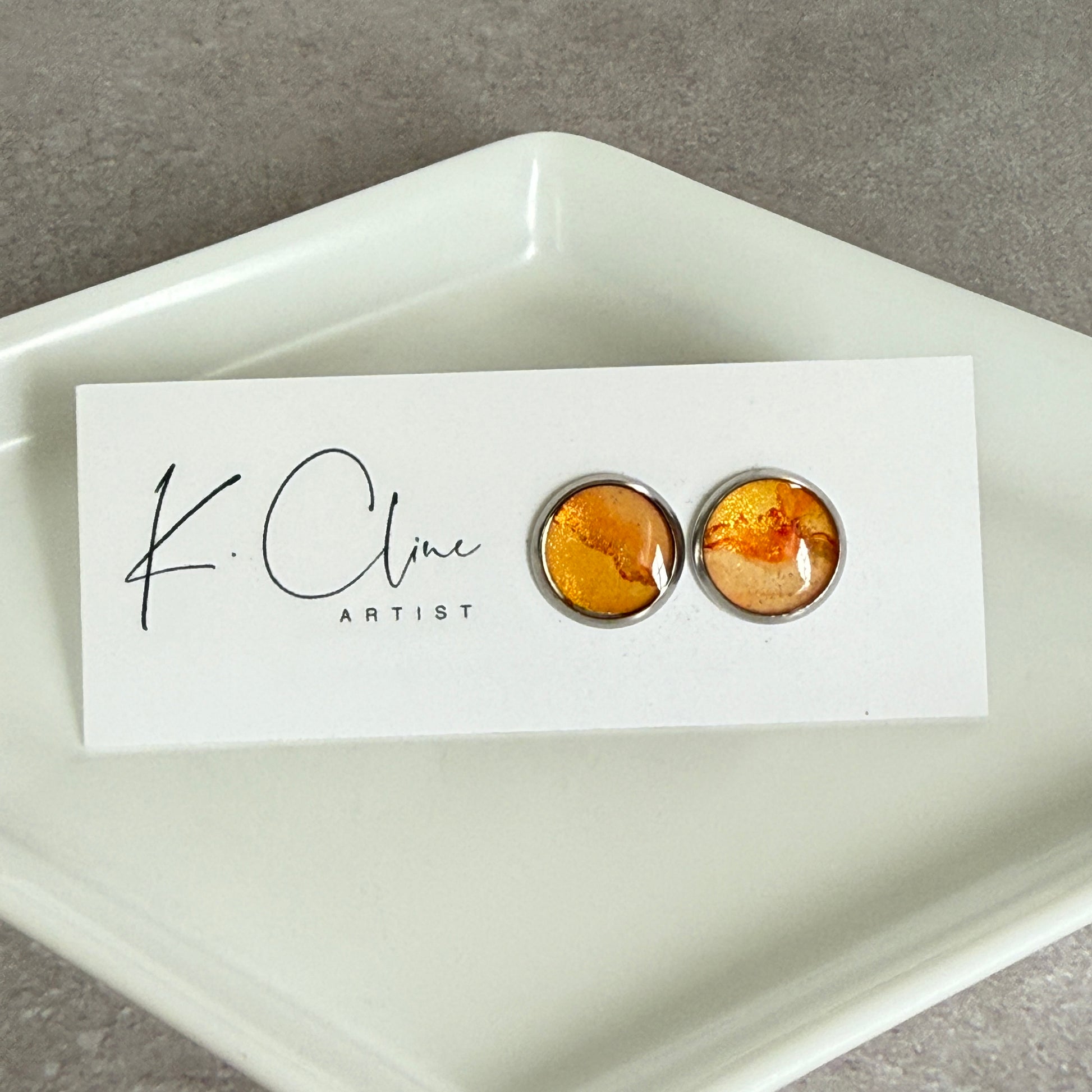 10mm stainless steel stud earrings set with clippings of my artworks and resin. It's a little piece of wearable art. :)