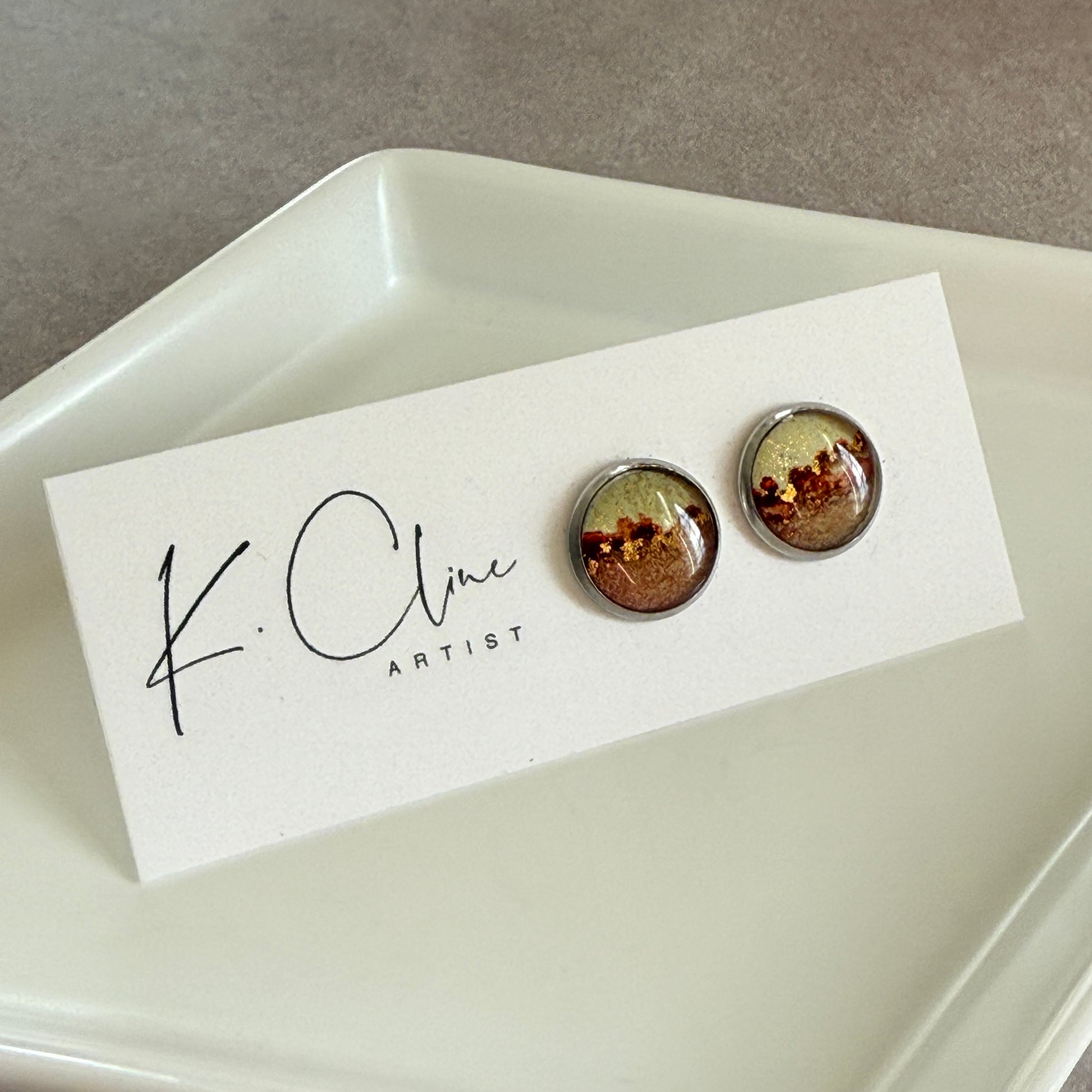 10mm stainless steel stud earrings set with clippings of my artworks and resin. It's a little piece of wearable art. :)